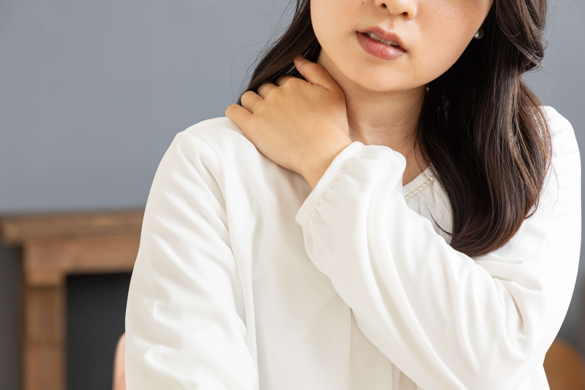 肩や首の緊張が続くと、姿勢が崩れやすくなり、さらに不調を感じやすくなるケースもあります。